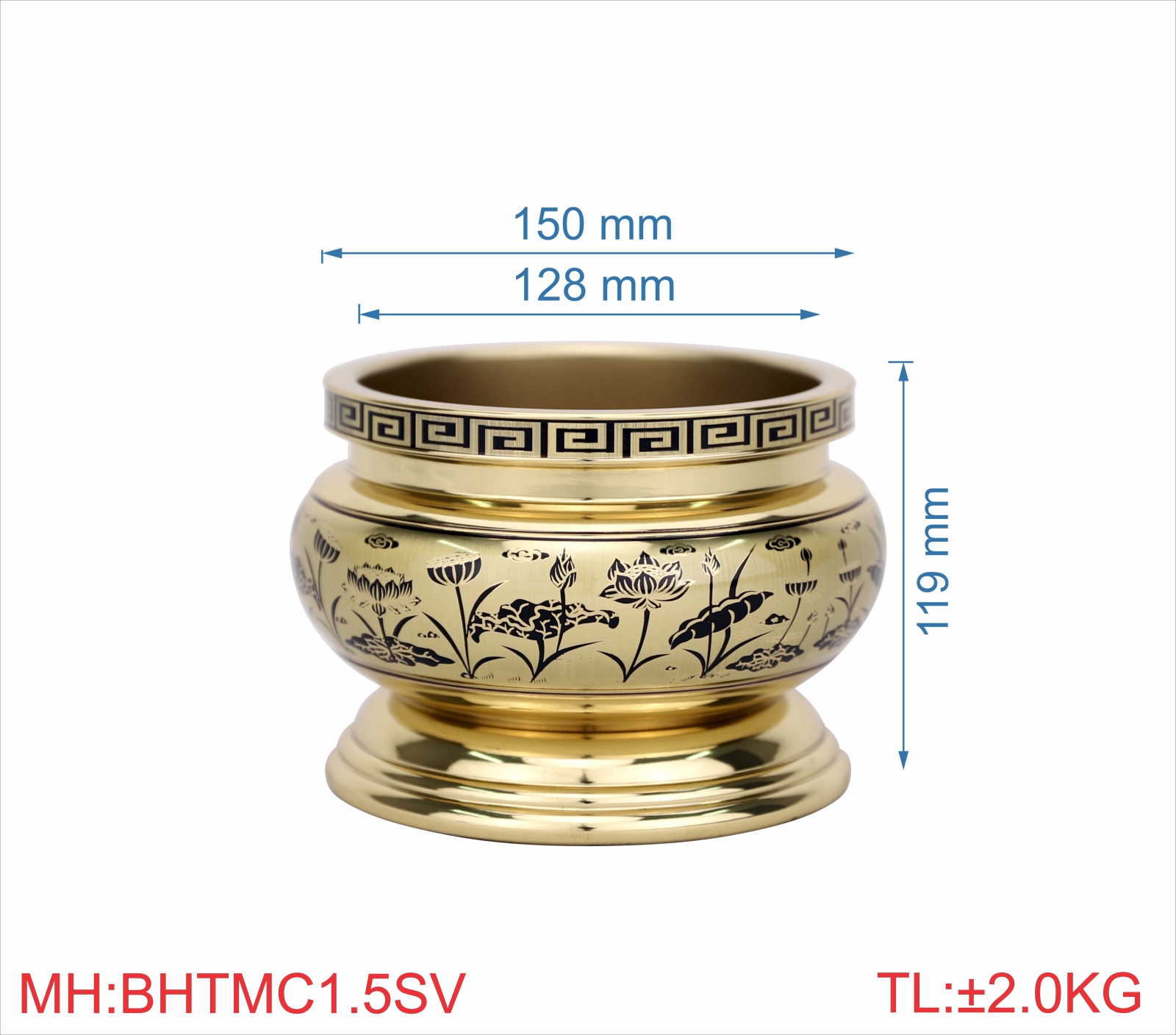 Bát hương trơn miệng cạnh 1T5 sen vàng